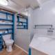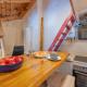 The kitchenette is equipped with an oven, a toaster and a fridge, as well as coffee machine and kettle.