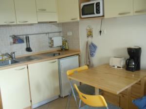 - Small kitchen area,