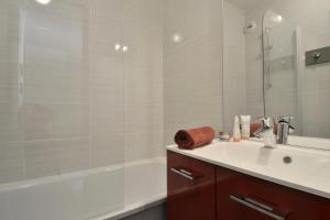 Questo appartamento con 1 camera da letto presenta un soggiorno con TV, una cucina con utensili e lavastoviglie, e 1 bagno.