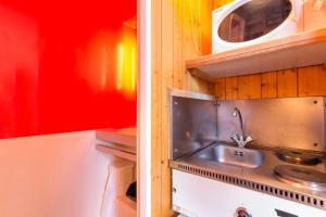 The studio's kitchen, which features a refrigerator and a microwave, is available for cooking and storing food. This studio offers a TV.