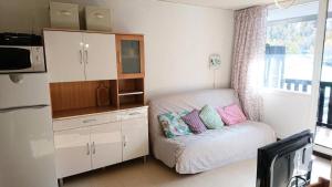 Diese Ferienwohnung ist ausgestattet mit einem TV. Die Küche ist eingerichtet mit einem Kühlschrank und einem Ofen, einer Mikrowelle sowie einer Kaffeemaschine.