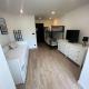 Apartmán má TV. Apartmán má také kuchyň s kompletním vybavením včetně lednice, myčky nádobí a trouby a koupelnu.