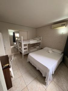 Apartament w Residência Avila 1 - Ipê Branco oferuje sypialnię, kuchnię z lodówką i mikrofalówką oraz łazienkę z prysznicem i pralką. Ręczniki i pościel są dostępne w apartamencie.