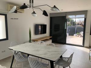 Featuring a private entrance, this air-conditioned villa comprises 1 living room, 3 separate bedrooms and 3 bathrooms with a bath and a shower. Guests will find a stovetop, a refrigerator, a dishwasher and kitchenware in the well-equipped kitchen. The villa also provides guests with a barbecue. The spacious villa provides a washing machine, a tea and coffee maker, a seating area as well as a terrace with sea views. The unit offers 6 beds.