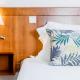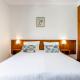 This air-conditioned room is decorated in blue and features a TV, fridge and private bathroom with hairdryer.