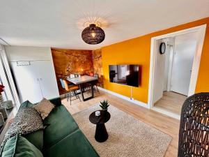 Die Wohneinheiten verfügen über Parkettböden und bieten eine voll ausgestattete Küche mit einem Kühlschrank, einen Essbereich, einen Flachbild-TV mit Kabelkanälen sowie ein eigenes Badezimmer mit einer Dusche und einem Haartrockner. Es gibt einen Ofen, eine Mikrowelle und eine Herdplatte sowie eine Kaffeemaschine und einen Wasserkocher.