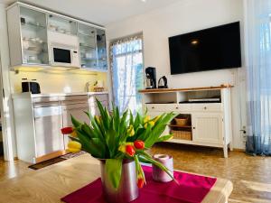 This apartment is comprised of 1 living room, 2 separate bedrooms and 1 bathroom with a walk-in shower and a hairdryer. The well-fitted kitchen features a stovetop, a refrigerator, a dishwasher and kitchenware. Featuring a balcony with garden views, this apartment also offers a washing machine and a flat-screen TV. The unit provides 2 beds.