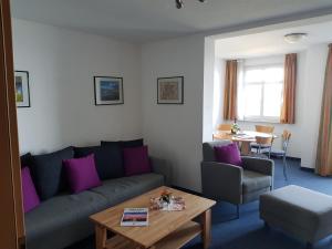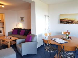 Dwupokojowy apartament z balkonem oferuje salon z TV, łazienkę z prysznicem oraz kuchnię z lodówką i zmywarką. Z obiektu roztacza się widok na morze. Ręczniki i pościel są dostępne w apartamencie Residenz Seeblick Fewo 25 mit Balkon und Meerblick.