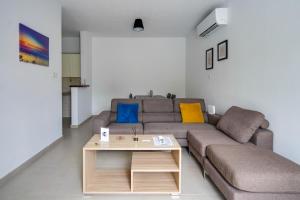 Featuring a private entrance, this air-conditioned apartment consists of 1 living room, 2 separate bedrooms and 1 bathroom with a shower and a hairdryer. The well-fitted kitchen features a stovetop, a refrigerator, kitchenware and an oven. The spacious apartment provides a flat-screen TV, a washing machine, a seating area, a dining area as well as garden views. The unit offers 3 beds.