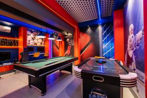This luxurious holiday home features a private pool, a hot tub and a fireplace. Guests will find a stovetop, a refrigerator, a dishwasher and kitchenware in the well-fitted kitchen. The holiday home also offers a barbecue. The spacious holiday home provides air conditioning, a washing machine, a tea and coffee maker, a dining area and a TV with cable channels. The unit offers 5 beds.