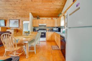 En Resort Cabin with Private Hot Tub!, esta casa con aire acondicionado ofrece 2 dormitorios, sala de estar, cocina con nevera y cafetera, y 2 baños con ducha y bañera de hidromasaje. La casa o chalet el alojamiento proporciona toallas y ropa de cama.