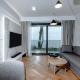 Questo appartamento con aria condizionata comprende 2 camere da letto, un soggiorno, un angolo cottura con utensili, frigorifero e macchina da caffè, e 1 bagno con doccia e vasca idromassaggio. Asciugamani e lenzuola sono inclusi nei servizi di Resort HEVENIA Rewal 5.