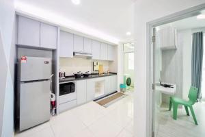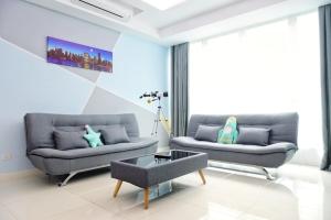 Klimatyzowany apartament z 3 sypialniami w obiekcie reSTARY - K Universe, Sutera Avenue Infinity Pool - Imago Opposite - KK City- 3BR,10Pax 来沙旅 K歌宇宙主题公寓 - 无边际日落海景泳池 - Imago商场对面 - KK市中心 - 3房10人 mieści również salon. W obiekcie reSTARY - K Universe, Sutera Avenue Infinity Pool - Imago Opposite - KK City- 3BR,10Pax 来沙旅 K歌宇宙主题公寓 - 无边际日落海景泳池 - Imago商场对面 - KK市中心 - 3房10人 znajduje się telewizor z płaskim ekranem. Na miejscu znajduje się kuchnia.