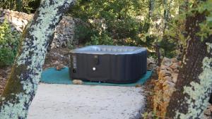 Guests will have a special experience as the holiday home features a hot tub. Featuring a private entrance, this air-conditioned holiday home consists of 1 living room, 1 separate bedroom and 1 bathroom with a walk-in shower. Guests can make meals in the kitchen that is equipped with a stovetop, a refrigerator, kitchenware and a microwave. Boasting a terrace with garden views, this holiday home also provides a washing machine and a flat-screen TV with cable channels. The unit offers 1 bed.