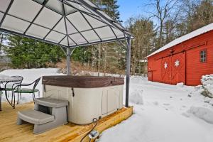 Guests will have a special experience as this holiday home offers a hot tub and a fireplace. This spacious holiday home is comprised of 1 living room, 3 separate bedrooms and 1 bathroom with a bath and free toiletries. Guests will find a stovetop, a refrigerator, a dishwasher and kitchenware in the well-fitted kitchen. The holiday home also has a barbecue. This holiday home features a washing machine, a private entrance, a TV with streaming services and a patio. The unit offers 5 beds.