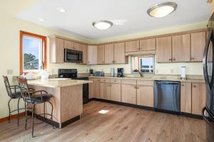 Tento prázdninový dům má 4 ložnice a kuchyň s kompletním vybavením včetně lednice, myčky nádobí a jídelní části.