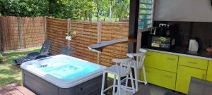 This holiday home offers a spa bath. Featuring a private entrance, this air-conditioned holiday home comprises a kitchen, 1 bedroom and 1 bathroom with a walk-in shower and a hairdryer. Guests will find a stovetop, a refrigerator, kitchenware and an oven in the kitchen. The holiday home also provides guests with a barbecue. Boasting a terrace with sea views, this holiday home also provides soundproof walls and a flat-screen TV. The unit offers 1 bed.