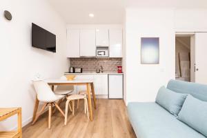 Questo appartamento offre 1 camera da letto, una TV a schermo piatto con canali via cavo, una cucina con frigorifero e microonde e 1 bagno con doccia. RG Studio fornisce lenzuola e asciugamani ai propri ospiti.