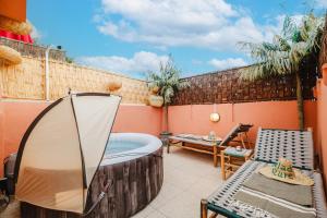 This holiday home's special features are the private pool and the hot tub. Featuring a private entrance, this air-conditioned holiday home comprises 1 living room, 3 separate bedrooms and 2 bathrooms with a walk-in shower and a hairdryer. The well-fitted kitchen features a stovetop, a refrigerator, a dishwasher and an oven. Boasting a terrace with garden views, this holiday home also provides a washing machine and a flat-screen TV with satellite channels. The unit provides 4 beds.