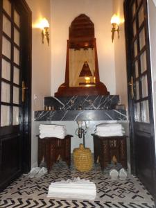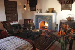 This spacious suite features a traditional Moroccan style and a fireplace decorated with mosaics. Extras include bathrobes.