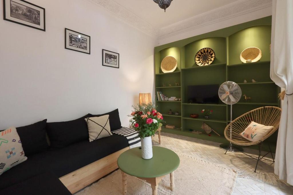 Tato vila s klimatizací má 1 ložnici, kuchyň s kompletním vybavením a terasu. Vybavení riad la girafe blanche de marrakech zahrnuje TV s plochou obrazovkou.