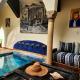 En el riad, las habitaciones cuentan con armario, ropa de cama y un balcón con vistas a la piscina. Todas las habitaciones del alojamiento están equipadas con baño privado y aire acondicionado, y algunas también cuentan con zona de estar. Las habitaciones tienen caja fuerte.
