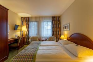 Ringhotel Warnemünder Hof se nachází na tichém místě a má pokoje zařízené ve venkovském stylu, které jsou vybavené satelitní TV, posezením a minibarem. K dispozici jsou rovněž pokoje pro alergiky a handicapované hosty.