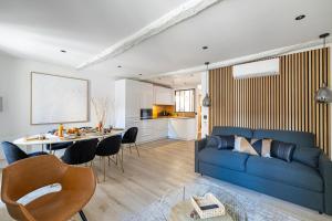 The spacious apartment features 2 bedrooms, a flat-screen TV with satellite channels, a fully equipped kitchen with a dishwasher and an oven, a washing machine, and 3 bathrooms with a shower. 15 RIOUFFE - Splendide appartement 6 couchages à 50m à pieds du Palais features a dressing room for guests.