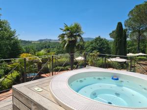 This holiday home features a pool with a view and a hot tub. Boasting a private entrance, this air-conditioned holiday home features 1 living room, 1 separate bedroom and 1 bathroom with a shower and a bidet. Guests can make meals in the kitchen that has a stovetop, a refrigerator, a dishwasher and kitchenware. Featuring a terrace with garden views, this holiday home also features a washing machine and a flat-screen TV. The unit has 1 bed.