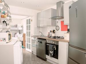 Apartmán v River View - Stunning Garden Flat w Free Parking Pass The Keys zahrnuje 2 ložnice, 2 koupelny se sprchou a kuchyň s lednicí a myčkou. V apartmánu ubytování nechybí TV a koupelna s fénem.