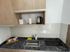 - Small kitchen area,