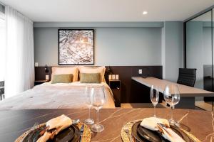 Este apartamento con aire acondicionado se compone de 1 dormitorio y 1 baño con ducha y artículos de aseo gratuitos. Hay una zona de comedor y una cocina completa con microondas, minibar y fogones.