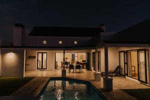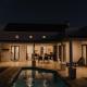 This holiday home features a patio, swimming pool, BBQ facilities, seating area and air conditioning.