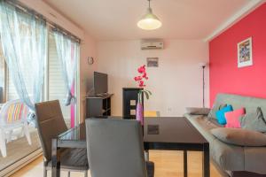 The private pool is the special feature of this apartment. Featuring a private entrance, this air-conditioned apartment comprises 1 living room, 1 separate bedroom and 1 bathroom with a shower and a hairdryer. Guests will find a stovetop, a refrigerator, a dishwasher and kitchenware in the well-fitted kitchen. The apartment also provides guests with a barbecue. Boasting a terrace with a quiet street view, this apartment also provides a coffee machine and a TV with satellite channels. The unit offers 2 beds.