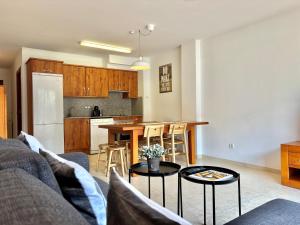 Diese Ferienwohnung mit einem Balkon und Bergblick bietet 2 Schlafzimmer, ein Wohnzimmer, einen Flachbild-TV, eine gut ausgestattete Küche mit einem Kühlschrank und einem Geschirrspüler sowie 1 Badezimmer mit einer Badewanne. In dieser Ferienwohnung werden Handtücher und Bettwäsche zur Verfügung gestellt.