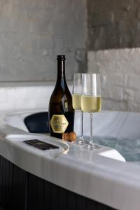 Rooms: 1This holiday home features a hot tub and a fireplace. Guests can make meals in the kitchen that has a refrigerator, a dishwasher, kitchenware and an oven. Boasting a terrace with an inner courtyard view, this holiday home also features a private entrance and a flat-screen TV. The unit is equipped with 1 bed.
