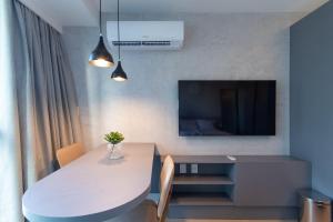 Diese Ferienwohnung mit Klimaanlage ist versehen mit 1 Schlafzimmer, TV, einem Essbereich und einer Küche mit einem Kühlschrank und einer Mikrowelle. In dieser Ferienwohnung werden Handtücher und Bettwäsche angeboten.