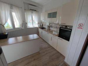 Guests will find a refrigerator, a dishwasher, kitchenware and an electric kettle in the kitchenette. The family room also features a barbecue. The spacious family room offers air conditioning, a washing machine, a terrace with sea views as well as a private bathroom boasting a bidet.
