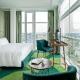 Camera decorata in stile moderno e cosmopolita, con vetrate a tutta altezza, bagno privato e connessione WiFi ad alta velocità.