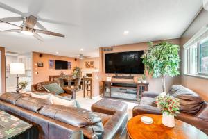 En Roomy Tucson Home with Hot Tub and Pickleball Court!, esta casa con aire acondicionado ofrece 2 dormitorios, sala de estar, cocina con nevera y cafetera, y 2 baños con ducha y bañera de hidromasaje. La casa o chalet el alojamiento proporciona toallas y ropa de cama.