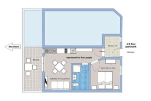 Featuring a private entrance, this air-conditioned apartment consists of 1 living room, 1 separate bedroom and 1 bathroom with a shower and a hairdryer. Guests can make meals in the kitchen that is equipped with a stovetop, a refrigerator, a dishwasher and kitchenware. Boasting a terrace with sea views, this apartment also provides soundproof walls and a flat-screen TV with streaming services. The unit offers 3 beds.