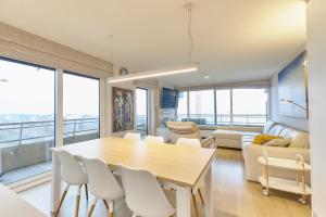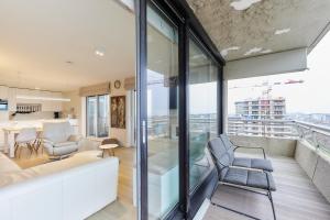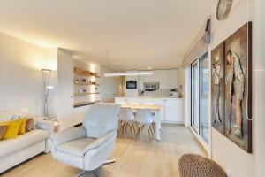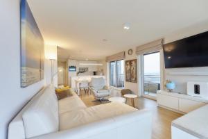 In the fully equipped kitchen, guests will find a refrigerator, a dishwasher, an oven and a microwave. The spacious apartment offers a tea and coffee maker, a seating area, a dining area, a flat-screen TV with streaming services, as well as sea views. The unit has 2 beds.