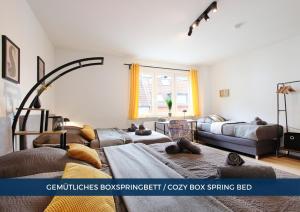 Apartmán ubytování nabízí 2 ložnice, 1 koupelnu, plně vybavenou kuchyň s jídelním koutem a lednicí a obývací část s TV s plochou obrazovkou. Koupelna v RtR Essen - Für bis zu 8 Personen - Voll ausgestattet - Zentral Limbecker Platz - Messe - Uniklinikum - Smart TV - Modern zahrnuje sprchu a toaletní potřeby zdarma. V ubytování RtR Essen - Für bis zu 8 Personen - Voll ausgestattet - Zentral Limbecker Platz - Messe - Uniklinikum - Smart TV - Modern jsou pro hosty připraveny ručníky a ložní prádlo.