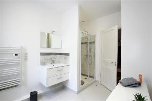 Apartmán má 2 ložnice, 1 koupelnu, ložní prádlo, ručníky, TV s plochou obrazovkou se satelitními programy, kuchyň s kompletním vybavením a balkon s výhledem na město. V koupelně ubytování RUE D'ANTIBES CENTER nechybí sprcha ani fén.