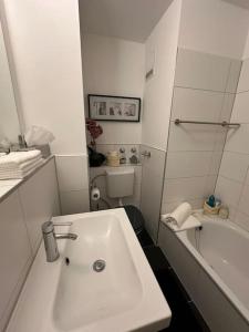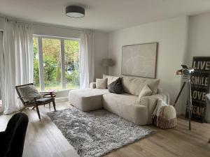Questo appartamento con terrazza e vista sul giardino presenta 1 camera da letto, un soggiorno, una TV a schermo piatto, una cucina con frigorifero e lavastoviglie e 1 bagno con vasca da bagno. Presso Ruhige Stadtperle mit Garten la dotazione include lenzuola e asciugamani.