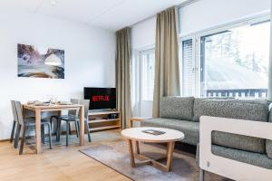 This apartment's special feature is the sauna. This apartment consists of 1 living room, 2 separate bedrooms and 1 bathroom with a walk-in shower and a bidet. The fully equipped kitchen has a stovetop, a refrigerator, a dishwasher and kitchenware. The apartment features parquet floors, a seating area with a flat-screen TV with cable channels, a washing machine, soundproof walls, as well as a tea and coffee maker. The unit offers 4 beds.
