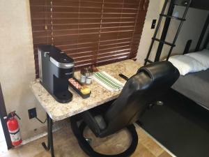 This mobile home's special feature is the spa bath. Guests can make meals in the kitchen that is equipped with a stovetop, a refrigerator, kitchenware and an oven. The air-conditioned mobile home provides a TV, a tea and coffee maker, a wardrobe, heating as well as mountain views. The unit offers 2 beds.