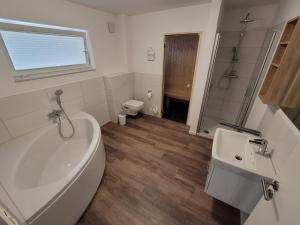 The sauna is a top feature of this apartment. This spacious apartment comes with a kitchen, a seating area, 2 separate bedrooms and 1 bathroom with a bath and a shower. The fully equipped kitchen has a stovetop, a refrigerator, a dishwasher and kitchenware. Boasting a balcony, this apartment also features a washing machine, a coffee machine and a TV. The unit has 2 beds.