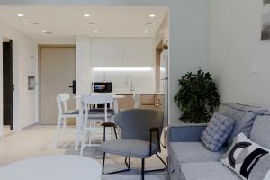 The private pool is a top feature of this apartment. Guests can make meals in the kitchen that has a stovetop, a refrigerator and a microwave. The spacious apartment offers air conditioning, a washing machine and a balcony. The unit has 1 bed.