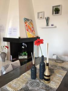 The fireplace is the standout feature of this holiday home. Boasting a private entrance, this air-conditioned holiday home comes with 1 living room, 2 separate bedrooms and 1 bathroom with a shower and a bidet. In the well-fitted kitchen, guests will find a stovetop, a refrigerator, kitchenware and an oven. Featuring a terrace with sea views, this holiday home also features a washing machine and a flat-screen TV. The unit has 5 beds.